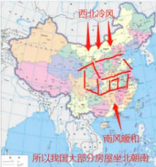 主要跟我國地理位置有一定關系,我國位于東北半球,亞洲東部、太平洋的西岸。北靠西北,面朝東南,冬季西北風冷,所以我們房屋就要用背面頂著,南風暖和清涼,所以我們房屋的窗戶主門就向著南邊開啟,就有了坐北向南的房屋戶型了。