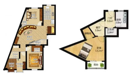 從空間布局講,尖角形的空間不利于家具擺放.利用起來不方便,造成空間浪費,而且尖角形的空間在視覺感官上會有一種不舒服的感覺對居住的人心理產生不好的影響。